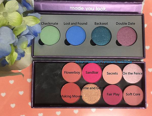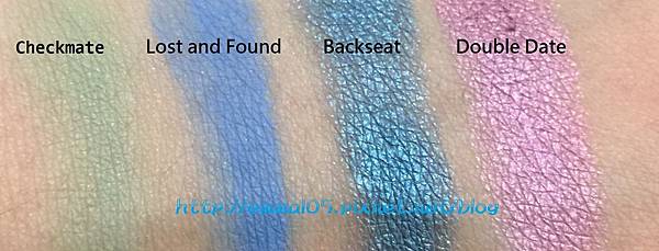 本篇分享的粉狀眼影色號:Belle of the Ball、Blow Me Away、Come and Get It、Flowerboy、Sandbar、Making Moves、Lost and Found、Backseat、Double Date、Checkmate、Poodle、Liar, Liar