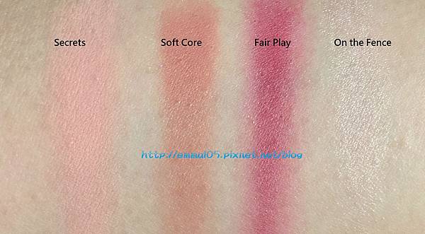 金屬桃紅色澤,這四顆裡面最明顯的眼影,比看官方的試色照還要美
